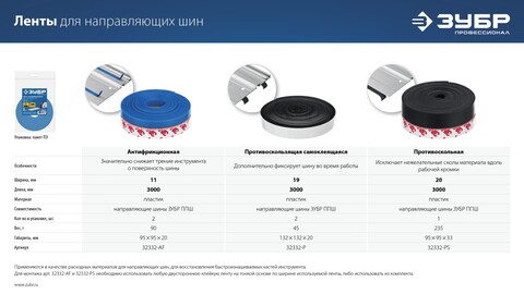 Антифрикционная лента от бренда ЗУБР — качество, которому можно доверять! Идеально подходит для защиты и продления срока службы направляющих верстаков, облегчает скольжение инструментов по поверхности стола. Снижает износ рабочих поверхностей, обеспечивая плавность хода и комфорт при работе. Купить ленту легко прямо сейчас — быстрое решение для вашего рабочего места! Удобная длина 3 метра позволяет быстро найти подходящее применение. В наборе две ленты, что обеспечивает экономичность и удобство использования.