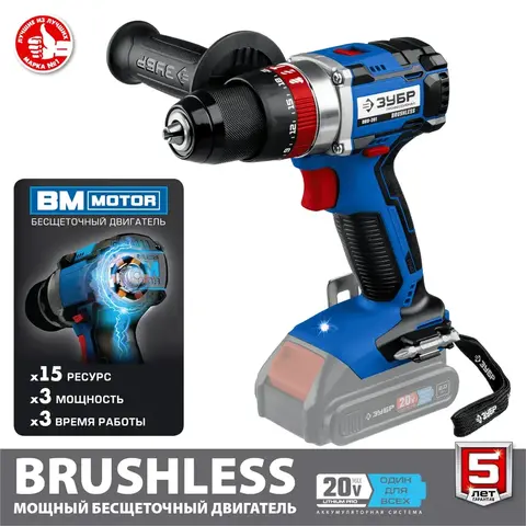 ЗУБР 20В бесщеточная ударная дрель-шуруповерт, без АКБ, в коробке, Профессионал. DBS-201.