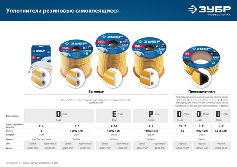 | Подгруппа | Уплотнители самоклеящиеся |