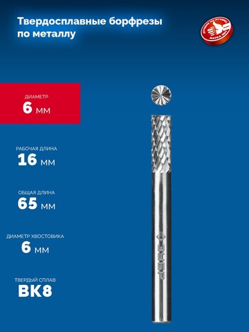 Профессиональная борфреза ЗУБР 6х16 мм типа В — ваш надежный помощник при работе с металлами! Твердосплавное покрытие обеспечивает долговечность инструмента, а цилиндрическая форма с торцевыми зубьями гарантирует точность обработки и чистоту поверхности. Хвостовик диаметром 6 мм удобен в использовании даже в труднодоступных местах. С этим инструментом работа станет быстрой, качественной и комфортной! Испытайте надежность профессионального бренда ЗУБР сами!