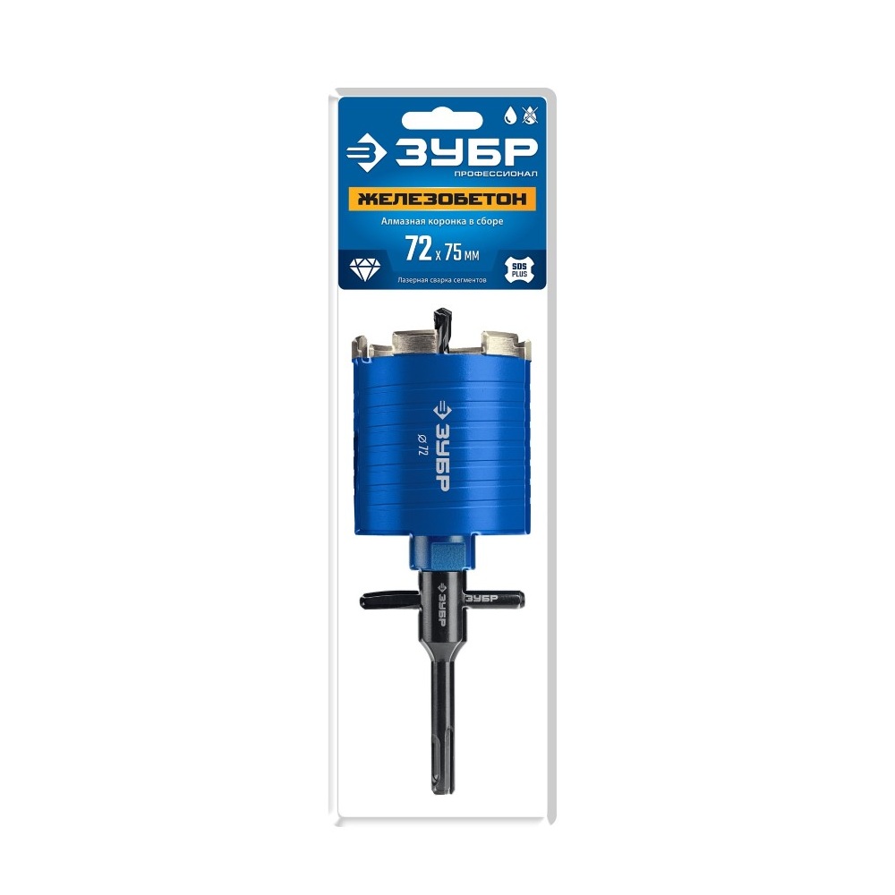 Алмазная коронка ЗУБР АСК – идеальный выбор профессионалов! Для быстрой установки подрозеток в бетонных стенах обеспечивает идеальное отверстие диаметром 72 мм благодаря рабочей глубине 75 мм и прочной конструкции с лазерной сваркой. Благодаря повышенной износостойкости и надежности значительно экономит время и силы при работе с твердыми материалами. Сделайте ремонт быстрее и качественнее вместе со ЗУБРОМ!