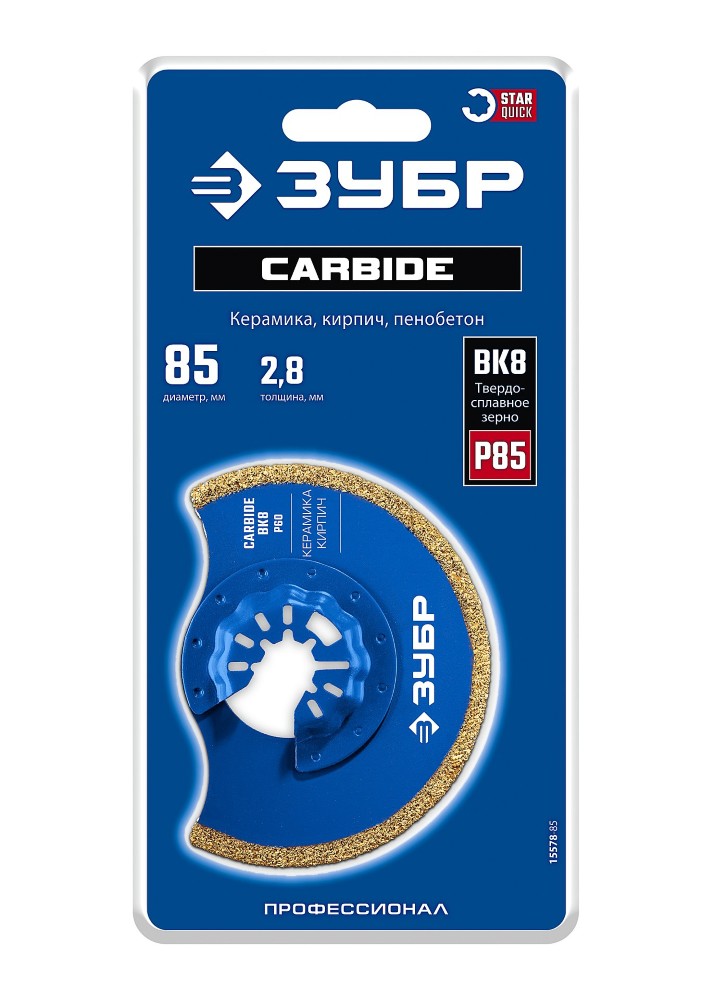 ЗУБР CARBIDE ВК8 Р40, 85x2.8 мм полотно дисковое с твердосплавной крошкой: керамика, кирпич, пенобетон, StarQuick (15578-85)