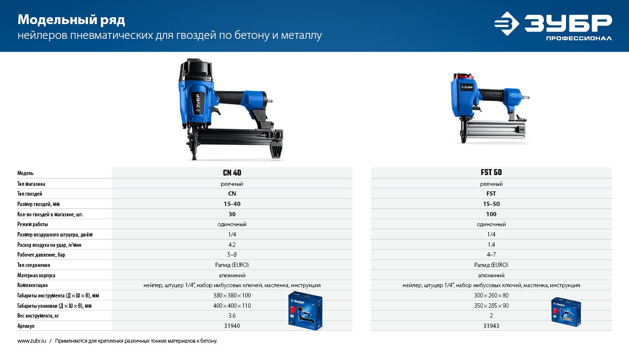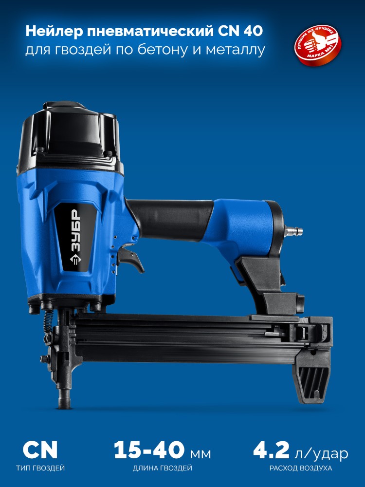 ЗУБР CN-40, пневматический нейлер для гвоздей по бетону и металлу, Профессионал (31940)