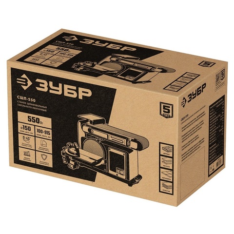 ЗУБР d 150 мм, 100 х 914 мм лента, 550 Вт, тарельчато - ленточный шлифовальный станок (СШЛ-550).