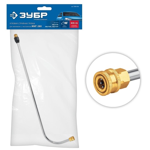 Угловая струйная трубка для минимоек с пистолетом ЗУБР Миг-280 70408-280 применятся для удлинения пистолета МИГ-280 с подсоединением насадок под углом 90 градусов. Подходит для моек АВД-П180, АВД-П200, АВД-П240. Полная совместимость с пистолетом ЗУБР МИГ-280 70410-280.