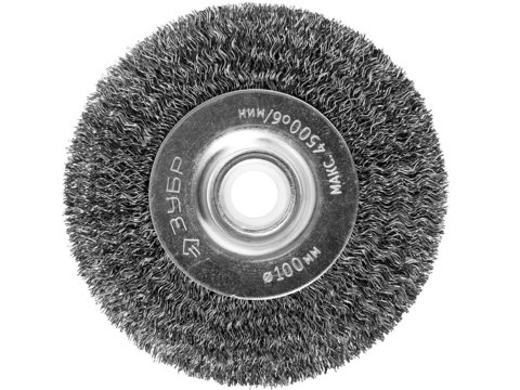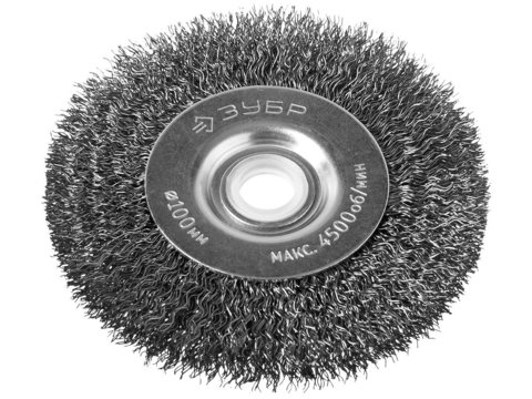 ЗУБР 100 х 12.7 мм, витая, стальная проволока 0.3 мм, дисковая щетка-крацовка для точильно-шлифовального станка, Профессионал (35185-100)