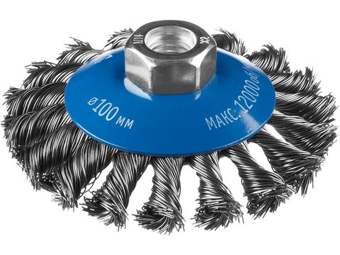 ЗУБР 100 мм, жгутированная стальная проволока 0.5 мм, коническая щетка-крацовка для УШМ, Профессионал (35269-100)