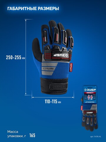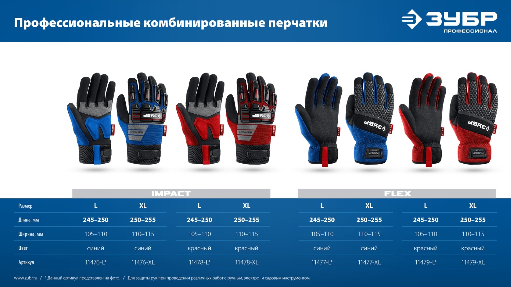 Профессиональные комбинированные перчатки ЗУБР IMPACT XL обеспечивают высокий уровень безопасности при выполнении строительных и ремонтных работ: