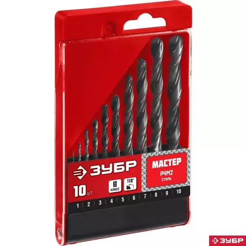 ЗУБР 10 шт. (Ø 1-10 мм), набор сверл по металлу 29605-H10.