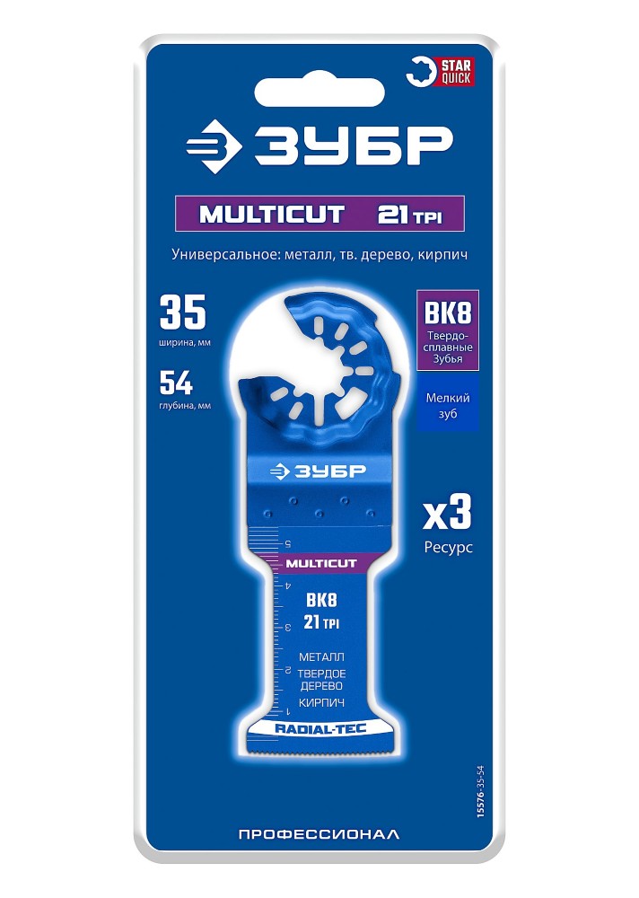 Полотно «MULTICUT ВК8» от бренда ЗУБР — ваш универсальный помощник! Твердосплавные зубья обеспечивают идеальное качество реза металла, дерева, кирпича. Экономьте время и силы благодаря высокой износостойкости и прочности. С системой быстрого крепления StarQuick установка занимает считанные секунды! Эффективность, надежность и удобство – выбирайте лучшее вместе со ЗУБРОМ!