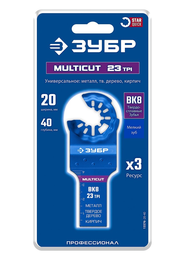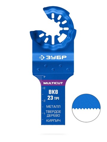 Полотно «MULTICUT ВК8» от бренда ЗУБР – идеальный выбор профессионалов! Требует минимум усилий при работе с металлом, твердым деревом и даже кирпичом! Твердосплавные зубья обеспечивают чистый рез без сколов. Система крепления StarQuick гарантирует быструю установку и надежность работы. Дольше служит, легче режет, удобнее монтируется – экономьте время и силы вместе со ЗУБРОМ!