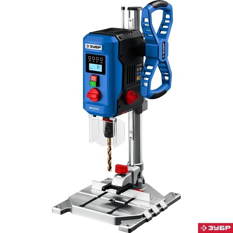 Станок сверлильный ЗУБР ВСС-П800, предназначен для сверления отверстий в заготовках из различных материалов. Электронный дисплей позволяет считывать информацию о текущей скорости и глубине сверления во время эксплуатации. Быстрозажимные тиски позволяют надёжно фиксировать даже круглые заготовки, обеспечивая высокую точность выполняемых отверстий. Лазерный указатель точно указывает точку вхождения сверла в материал, обеспечивая быстрое получение точного результата. LED подсветка рабочей зоны. Двухступенчатый редуктор позволяет подобрать оптимальные режимы для обрабатываемого материала.