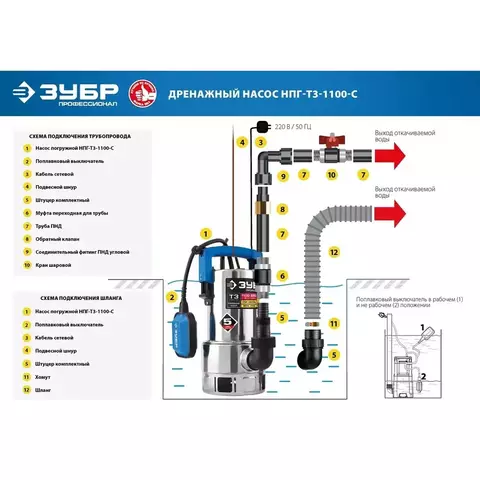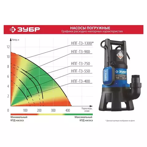 ЗУБР 900 Вт, 240 л/мин, насос погружной дренажный для грязной воды НПГ-Т3-900 Профессионал.