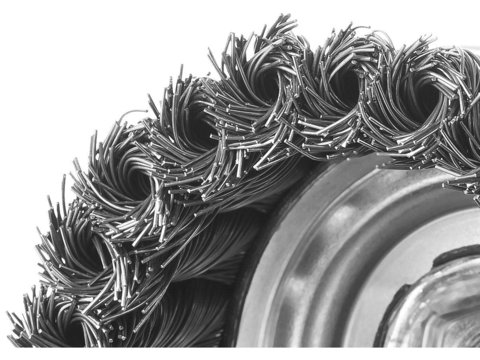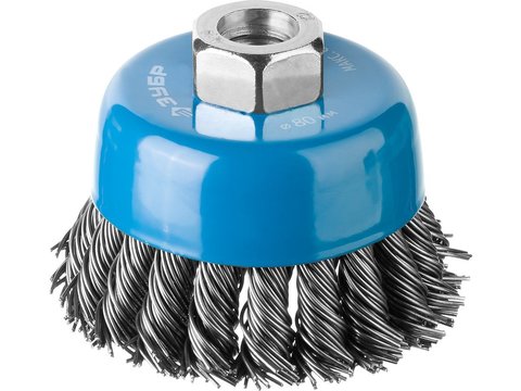 ЗУБР "ПРОФЕССИОНАЛ". Щетка чашечная для УШМ, плетеные пучки стальной проволоки 0,8мм, 80ммхМ14 35277-080_z02, применяются для удаления ржавчины, шлаков, окалины с металлических поверхностей. Идеально подходят для обработки сварных швов, отливок из чугуна, стали и цветных металлов.