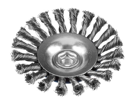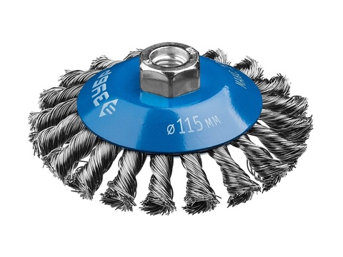 ЗУБР "ПРОФЕССИОНАЛ". Щетка коническая для УШМ, плетеные пучки стальной проволоки 0,5мм, 115ммхМ14