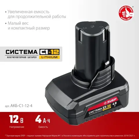 ЗУБР С1-12, 12 В, 4.0 Ач, аккумуляторная батарея (АКБ-С1-12-4).