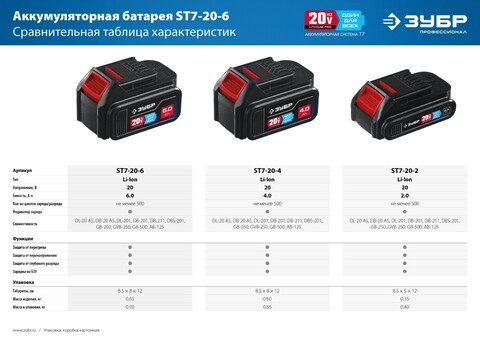 Аккумуляторная батарея ЗУБР Профессионал 20 В, li-ion, 6 Ач ST7-20-6 - источник питания для шуруповерта с увеличенной емкостью, позволит работать еще дольше и производительнее. Современные Li-Ion элементы профессиональной серии гарантируют превосходные технические характеристики, надежность и результат.