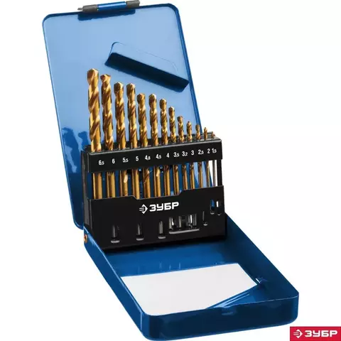 ЗУБР 13 шт. (Ø 1,5-6,5 мм), ТИТАН, Р6М5, класс А, набор сверл по металлу 29615-H13_z01 Профессионал.