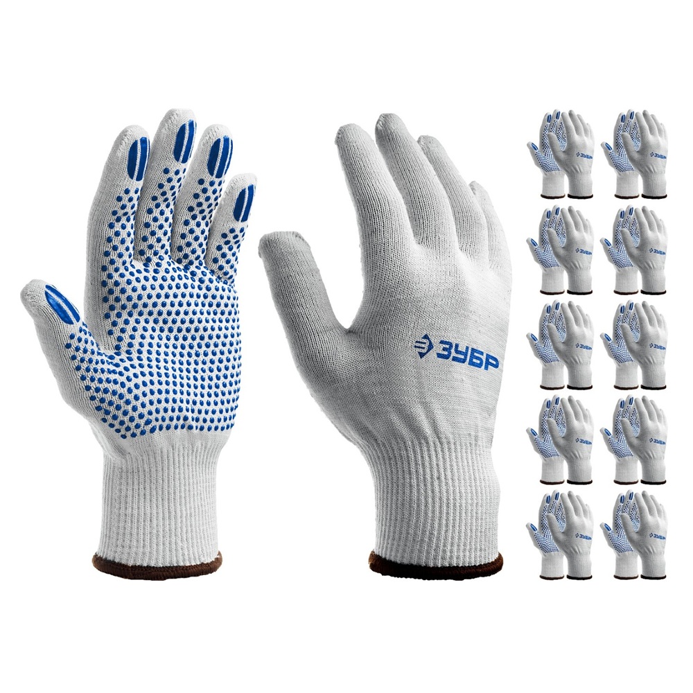 Перчатки ЗУБР ТОЧКА+ L-XL – надежный помощник каждого мастера! Износостойкое хлопковое полотно 13 класса прочности дополнено защитным гель-покрытием из ПВХ, которое обеспечивает комфорт даже при длительных работах. Рельефная поверхность "точка" улучшает сцепление с любыми поверхностями. Комфорт, надежность, доступная цена – ваш идеальный выбор для ремонта, строительства и работ по дому. Купите прямо сейчас оптом по выгодной цене!
