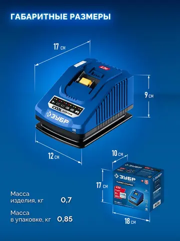 Зарядите аккумулятор быстро и безопасно с профессиональным устройством ZUBR Turbo Charge! Идеально подходит для зарядки литий-металлогидридных батарей обеспечивает ток до 6А, сокращая время заряда без риска повреждения аккумулятора. Удобен в использовании, компактен и надежен – ваш надежный помощник в работе. Электроинструменты готовы к работе мгновенно. С ZUBR Turbo Charge ваша продуктивность растет!