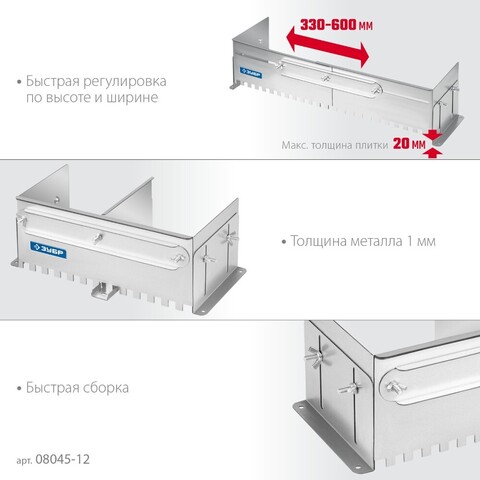 Предназначена для быстрой работы с большим объемом работ по укладке плитки шириной до 600мм Сделана изоцинкованной стали, благодаря которой гребенка не заржавеет и прослужит максимально долго. Имеет величину зуба 12мм. Боковые регуляторы помогут закрепить гребенку на рабочей поверхности и настроить её по высоте под любую плитку. В комплекте имеется дополнительная секция, благодаря которой гребенку можно использовать даже с самыми узкими плитками. Легко моется, не боится влаги.